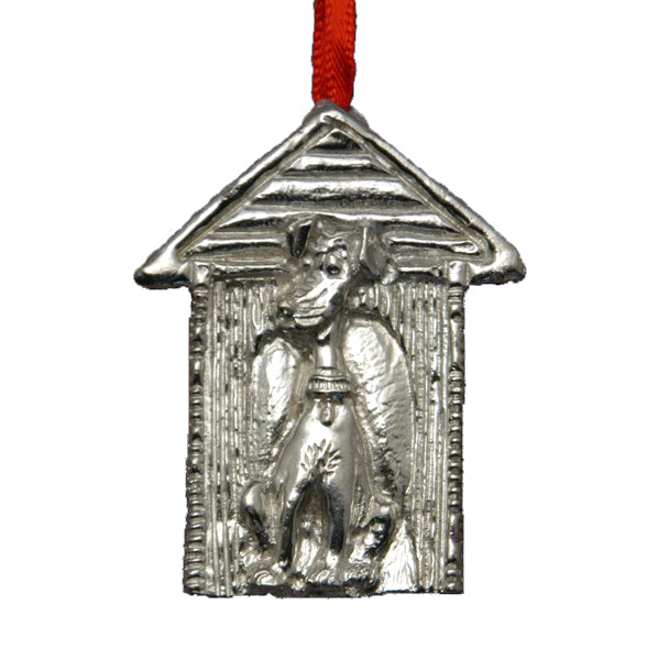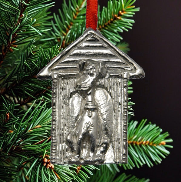 Décoration de Noël en étain fin.Chien dans sa niche - 2" haut /D